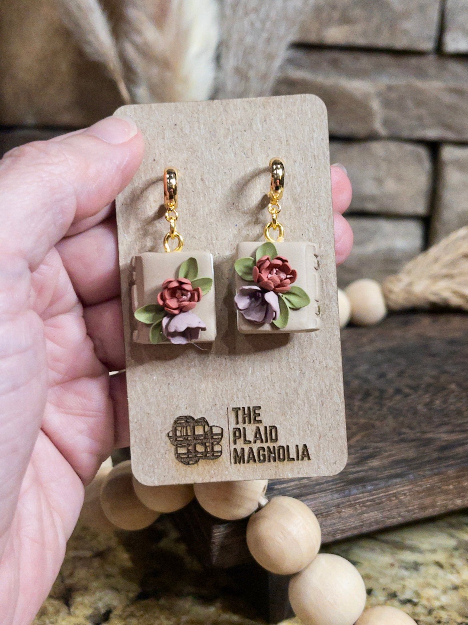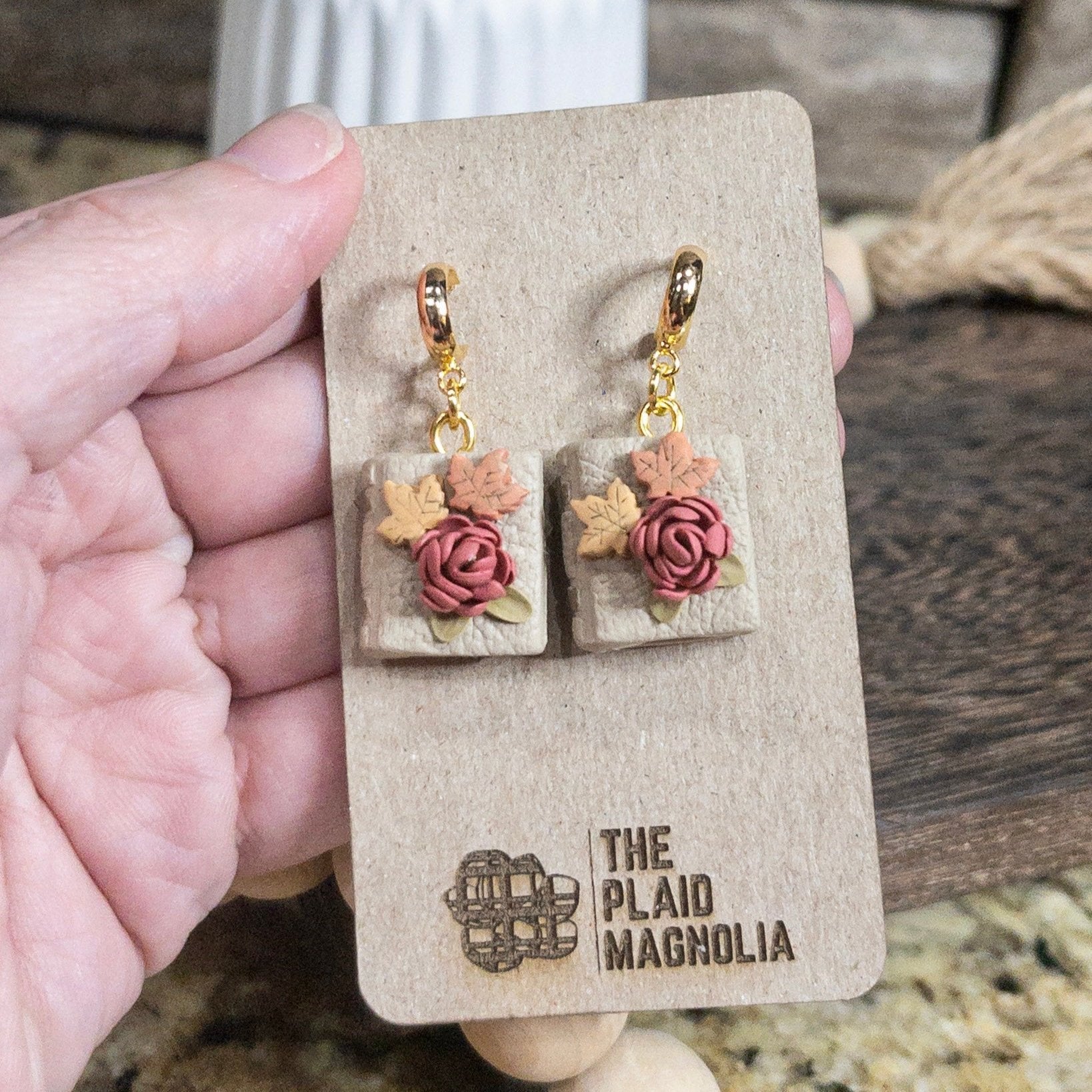 Polymer clay earrings are water resistant, but not water proof. Remove jewelry before bathing and swimming. Keep jewelry stored in a clean, dry place. All jewelry can be cleaned with water and gentle soap and gently dried with a soft cloth. Polymer clay is very durable and lightweight, but avoid bending or dropping.