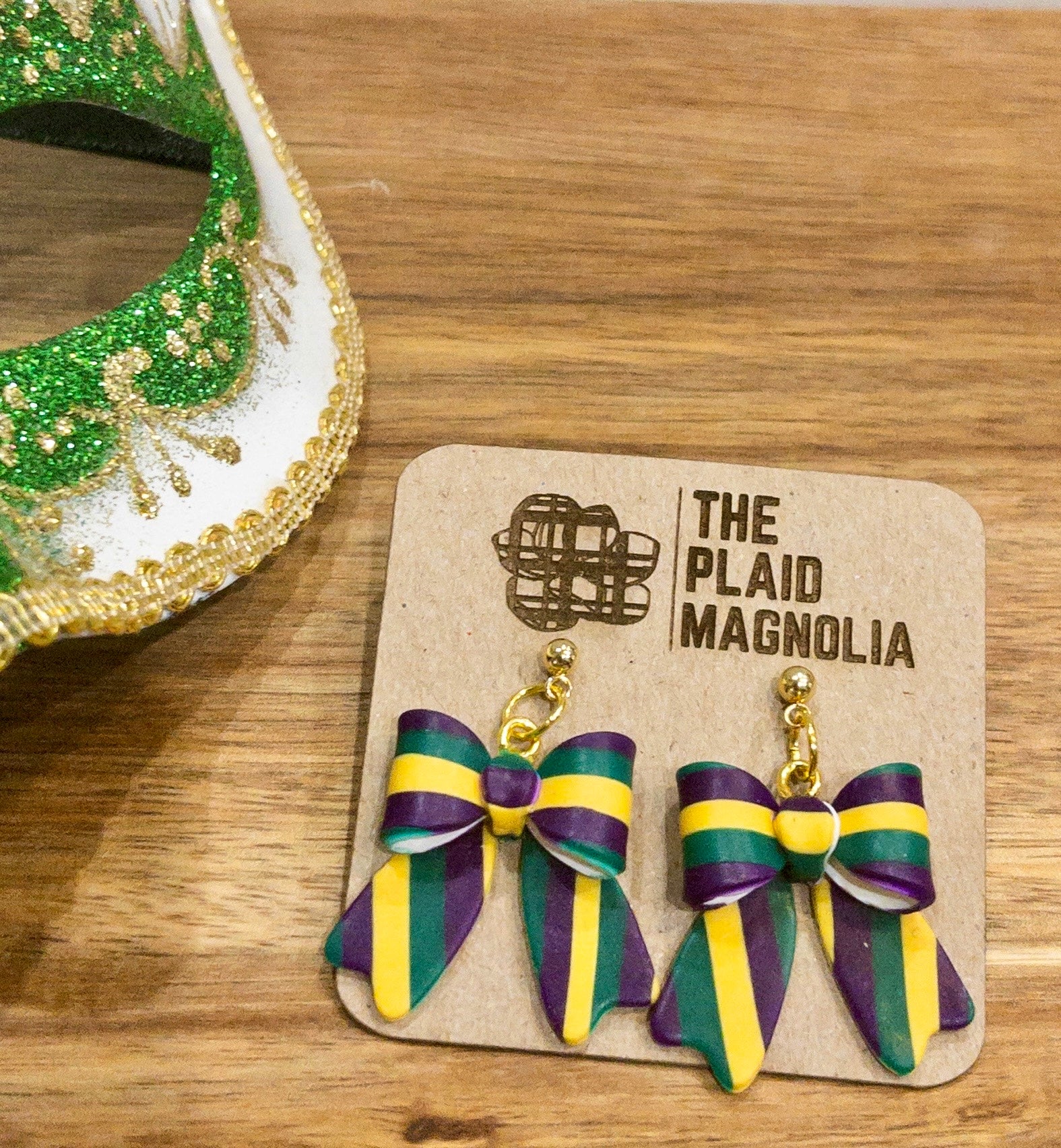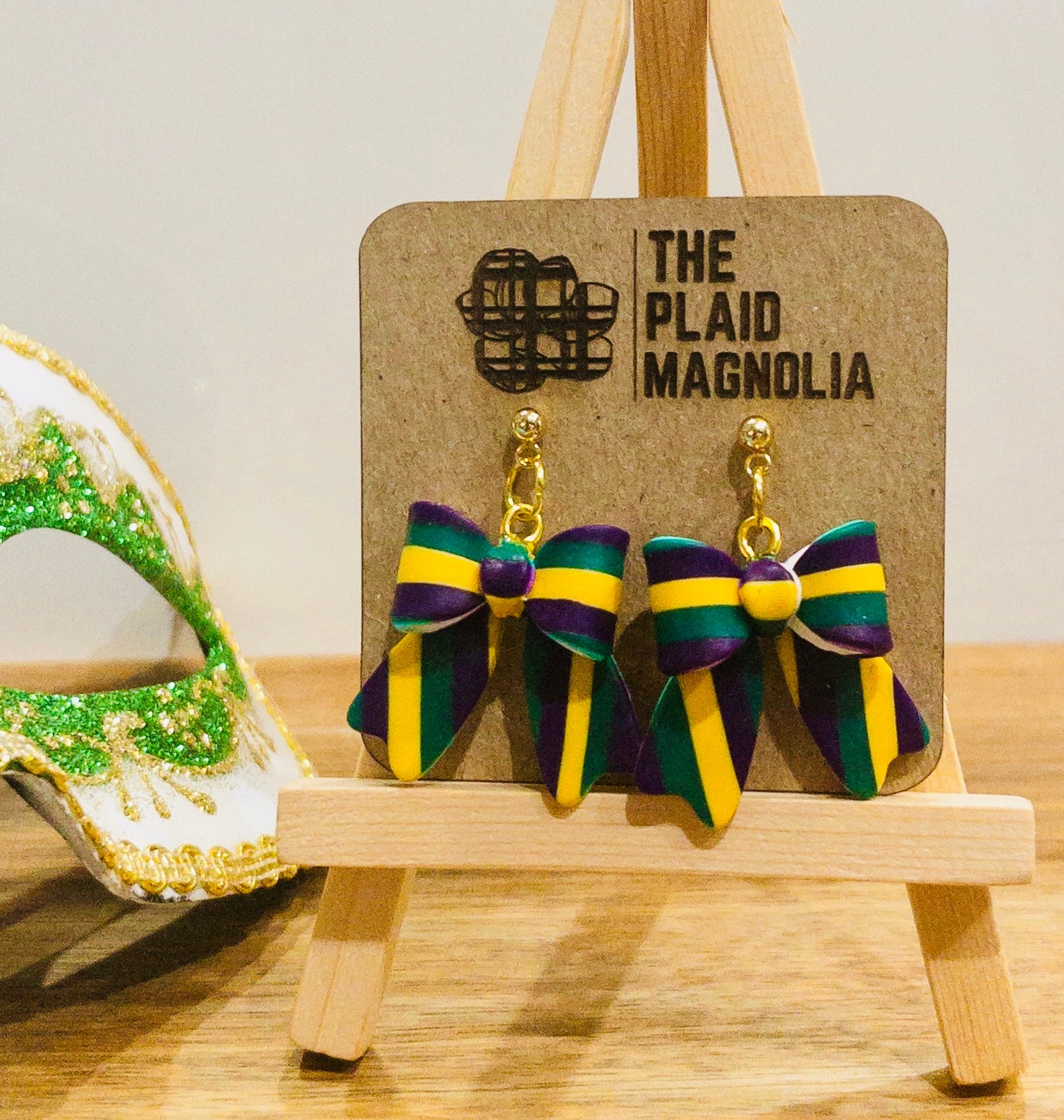 Introducing our Carnival Season Plaid Bows, handcrafted with Mardi Gras colored polymer clay. These bow earrings add a touch of festive flair to any outfit. Stand out in the crowd and celebrate in style with these exclusive and elegant accessories.