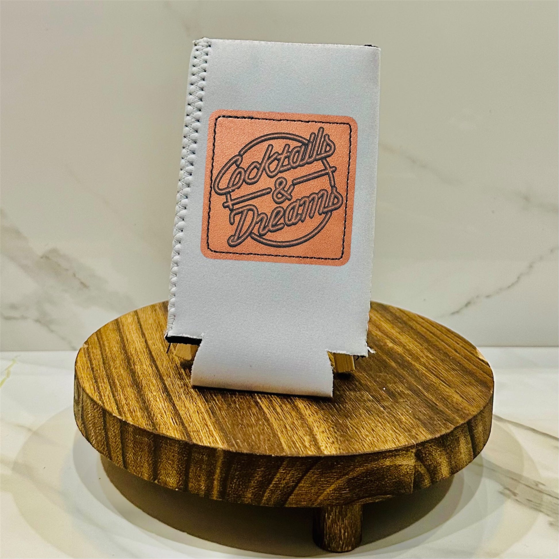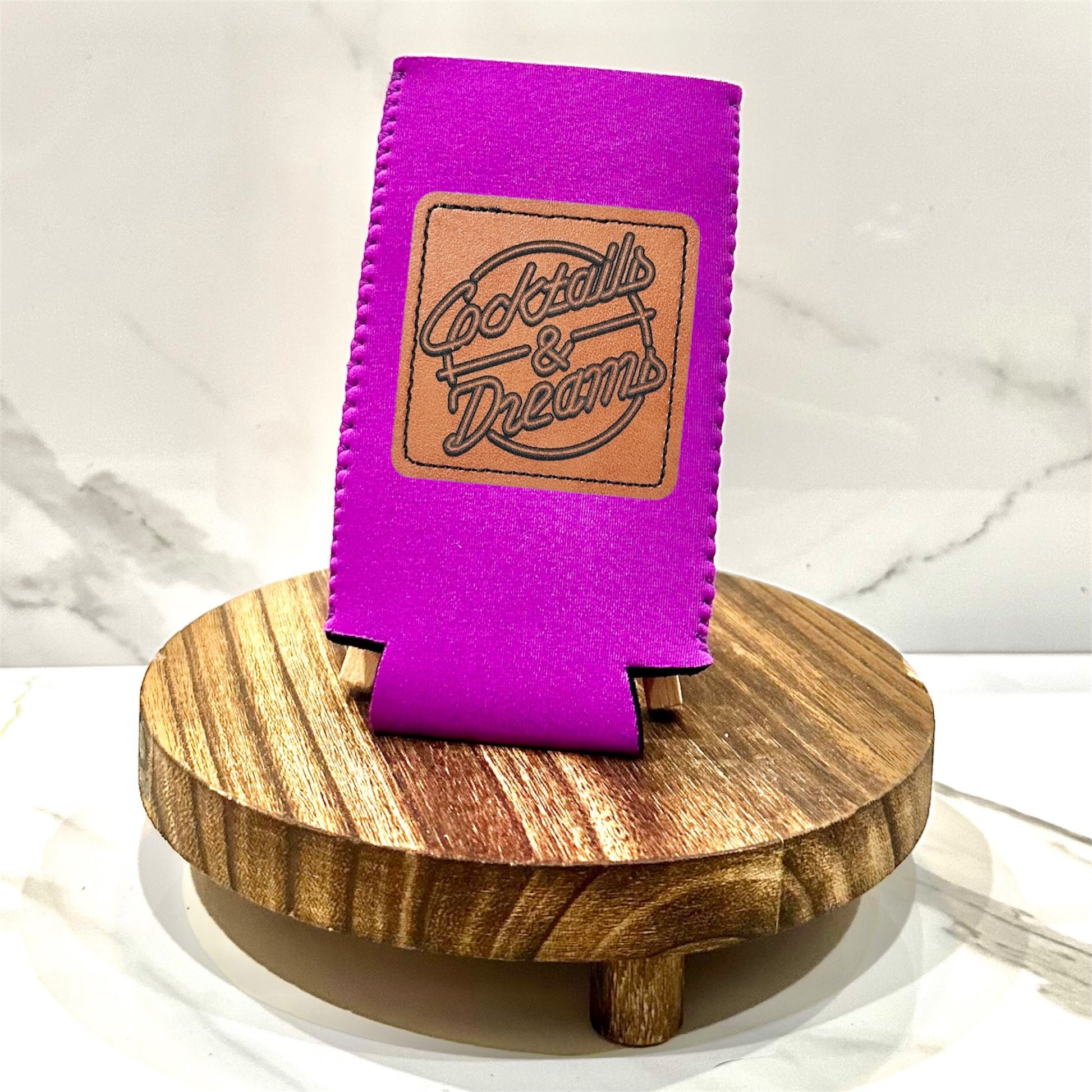Keep your slim cans colder than a frozen margarita with our Cocktails & Dreams koozie! Featuring an engraved patch inspired by the iconic movie, this neoprene koozie will keep your drinks cool and your party vibes hot. Perfect for any cocktail lover (and dream chaser)!