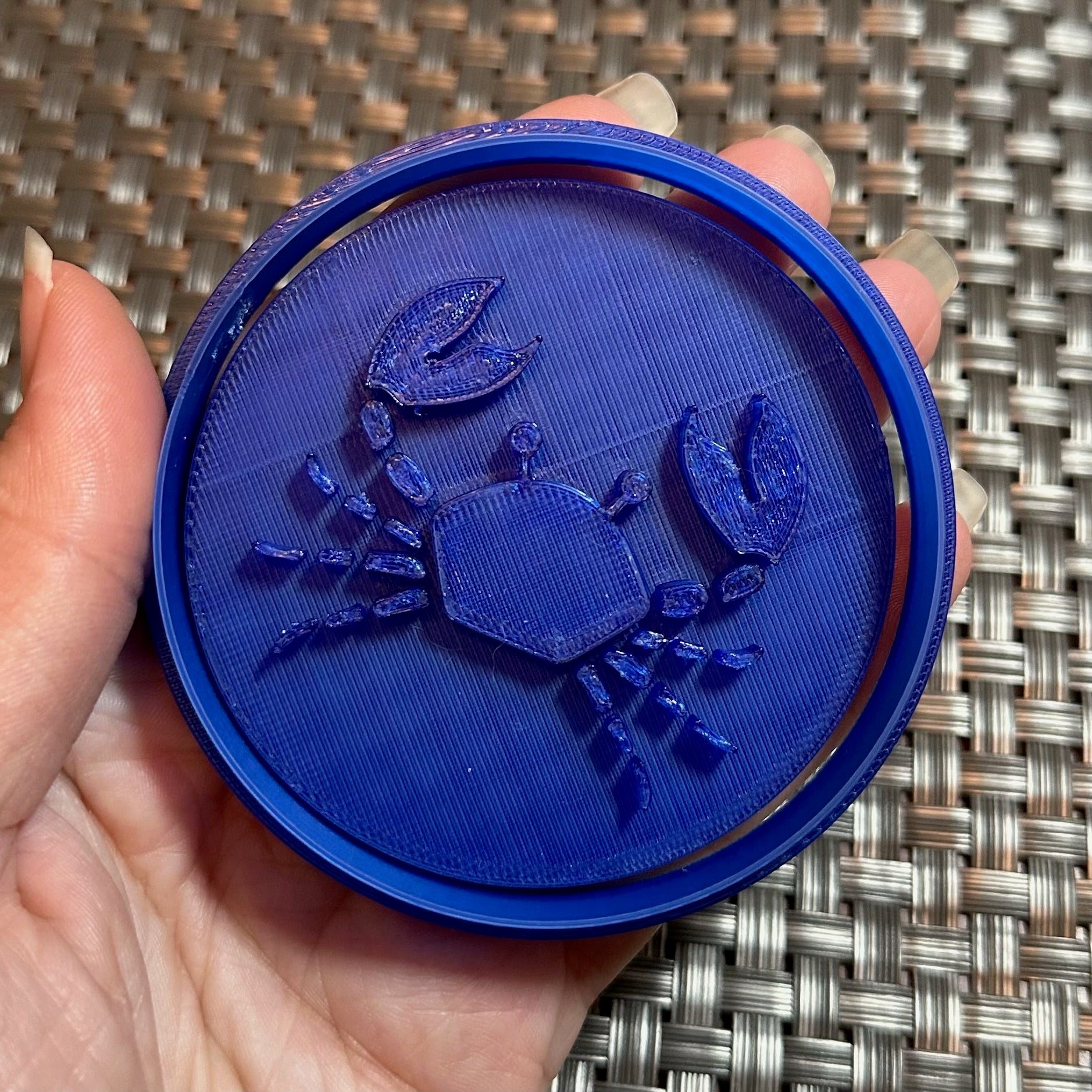Transform your baking with this round crab cookie cutter! Perfect for cookie decorating, fondant work, or any baking adventure, this custom 3D printed tool cuts clean circles while the separate stamp adds adorable crab details. Watch your cookies scuttle off the cooling rack!