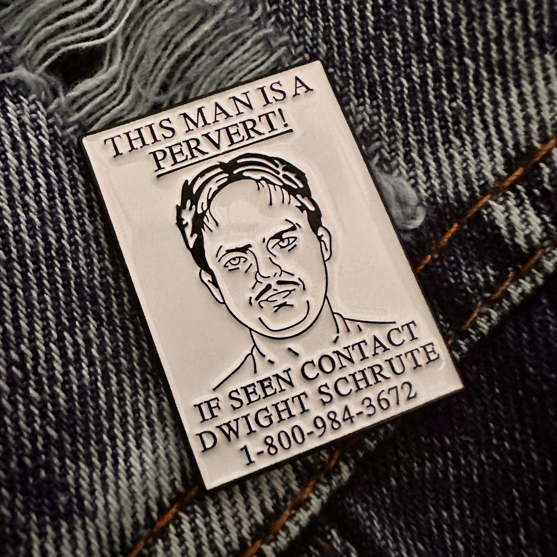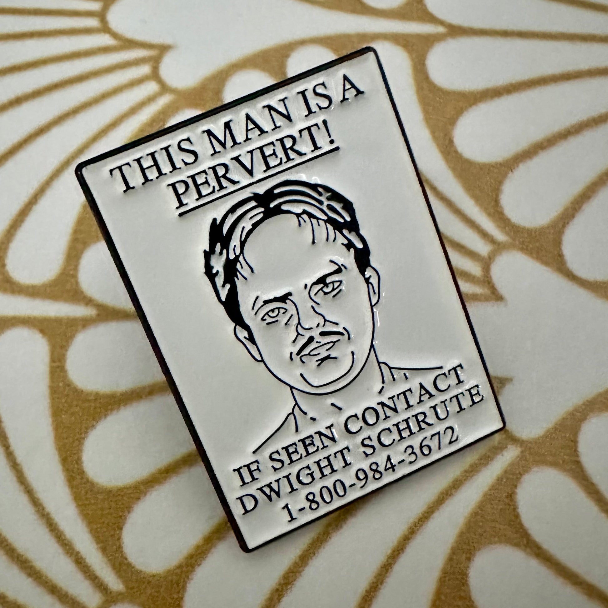 Get your office humor on with the Dwight Schrute Enamel Pin! Featuring the beloved character and his iconic "pervert poster," this pin is a must-have for fans. Add some quirk to your style and show off your Dunder Mifflin pride. (No bears were harmed in the making of this pin!)