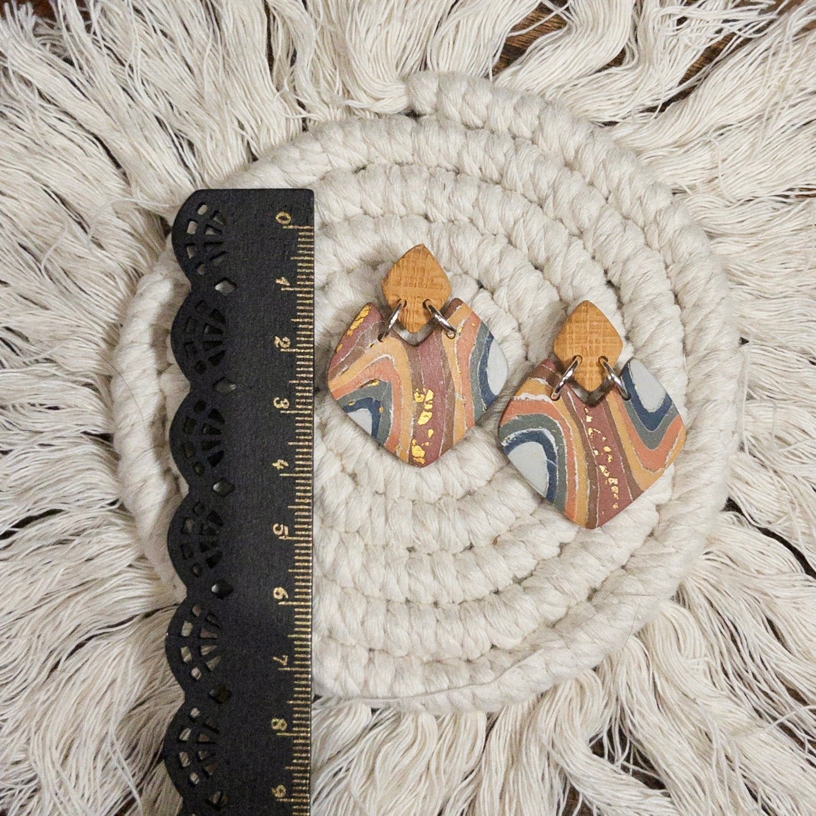 Polymer clay earrings are water resistant, but not water proof. Remove jewelry before bathing and swimming. Keep jewelry stored in a clean, dry place. All jewelry can be cleaned with water and gentle soap and gently dried with a soft cloth. Polymer clay is very durable and lightweight, but avoid bending or dropping.
