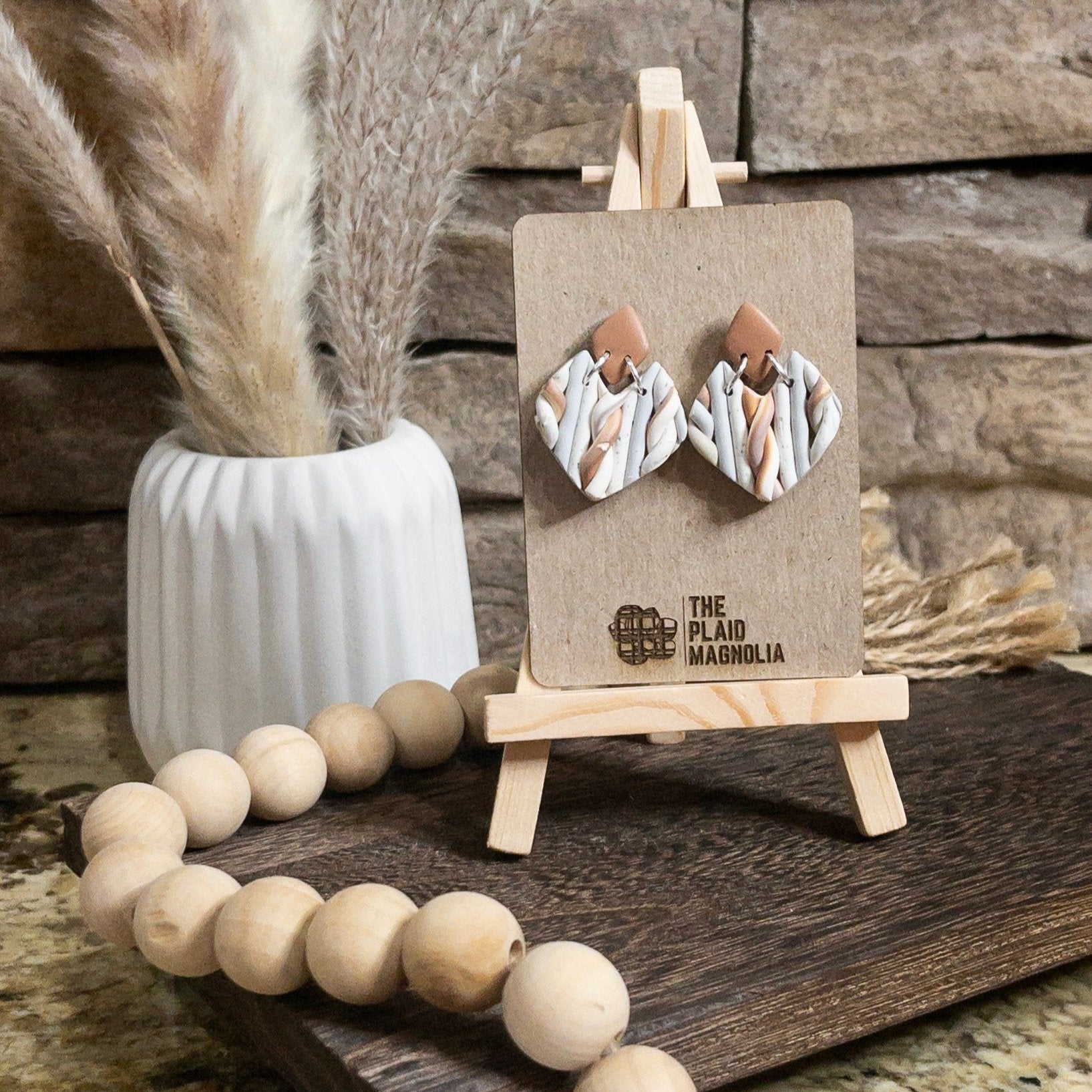 All earring are made with hypoallergenic metal posts or studs (including wooden posts).