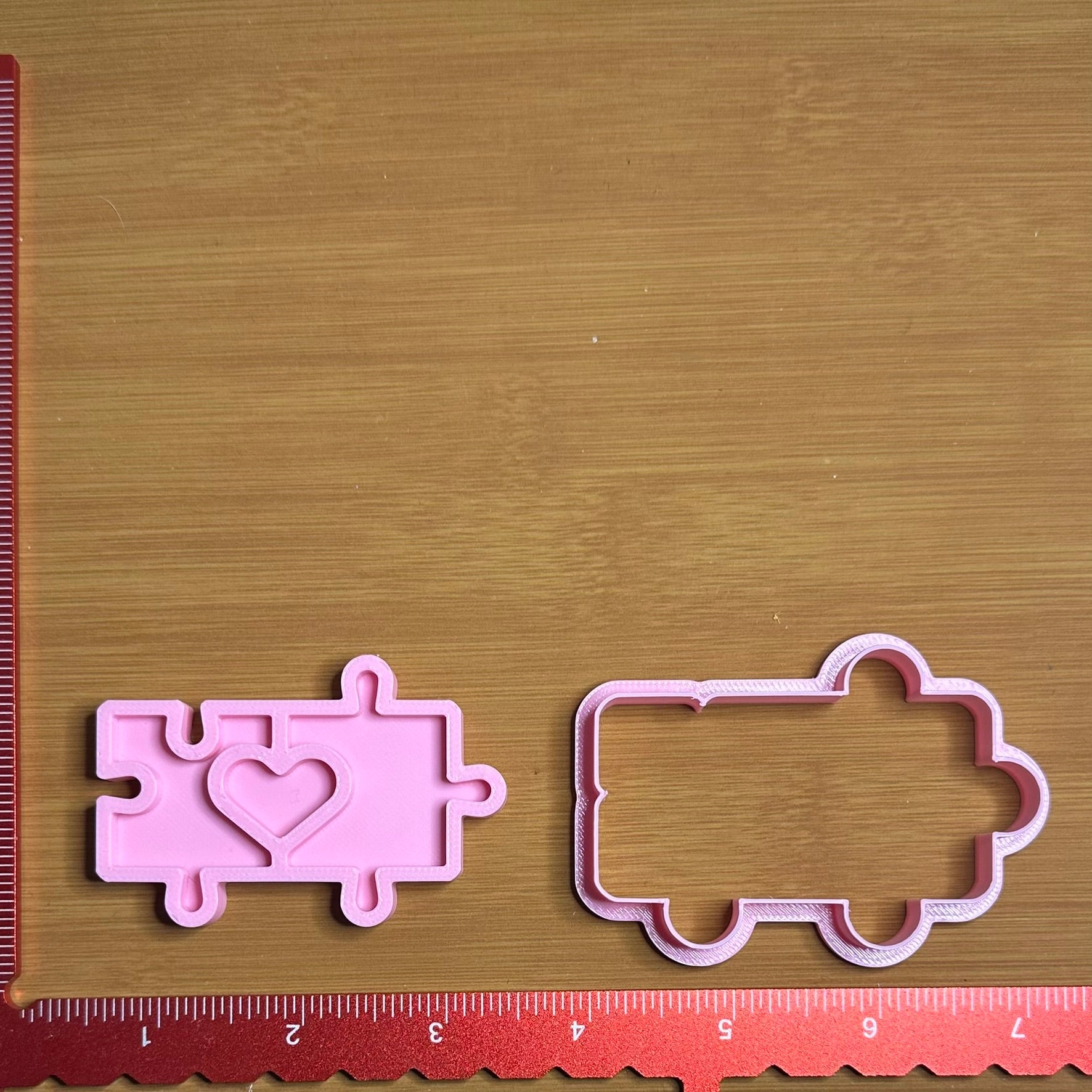 Puzzle Pieces with Heart - Custom 3D Printed Cookie Cutter + Stamp Combo