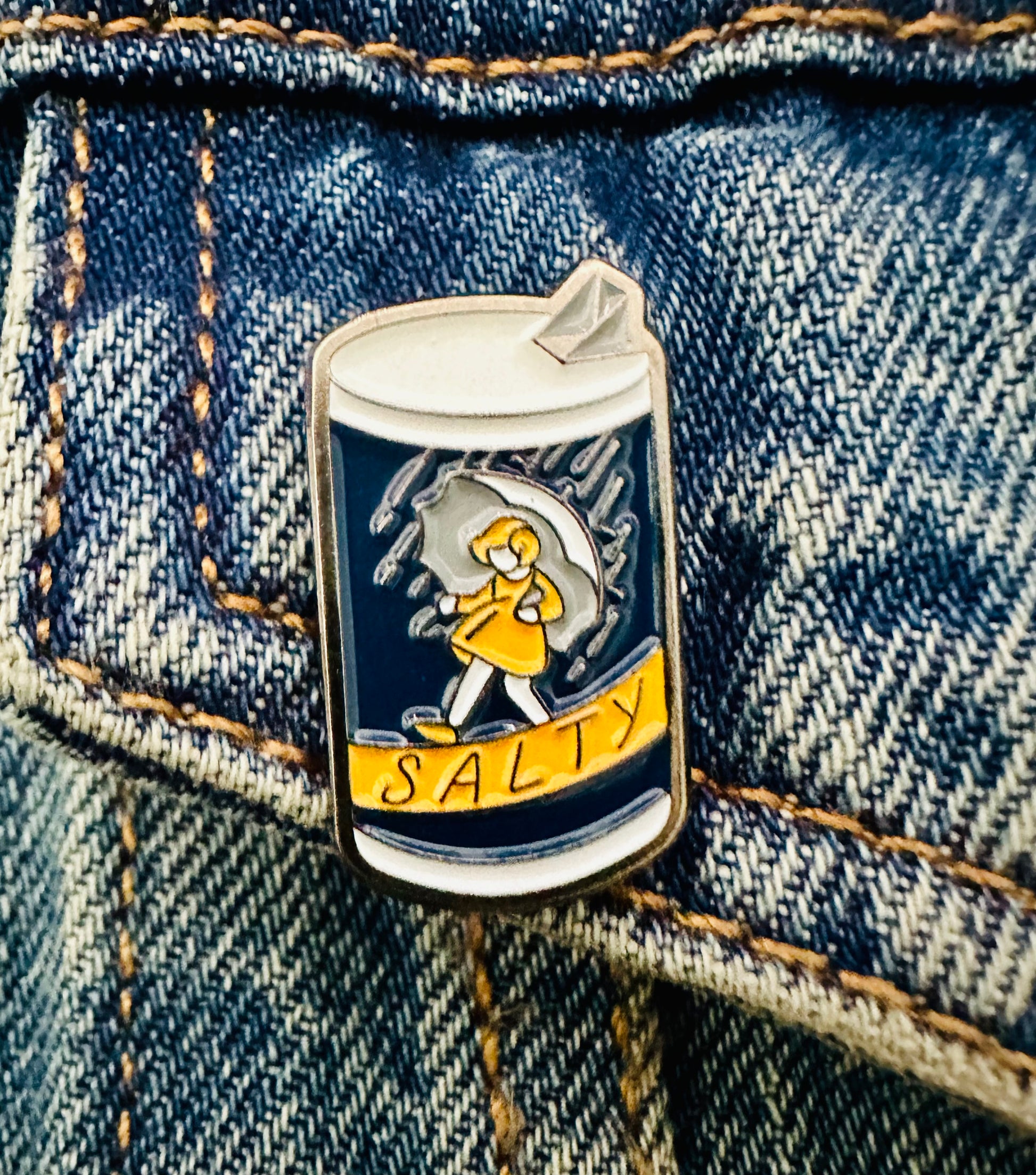 Add a little sass to your outfit with our Salty Enamel Pin! This quirky pin adds a touch of personality to any look. Wear it proudly as a statement piece or use it to add some playful charm to your ensemble. Perfect for the salty girl in all of us.