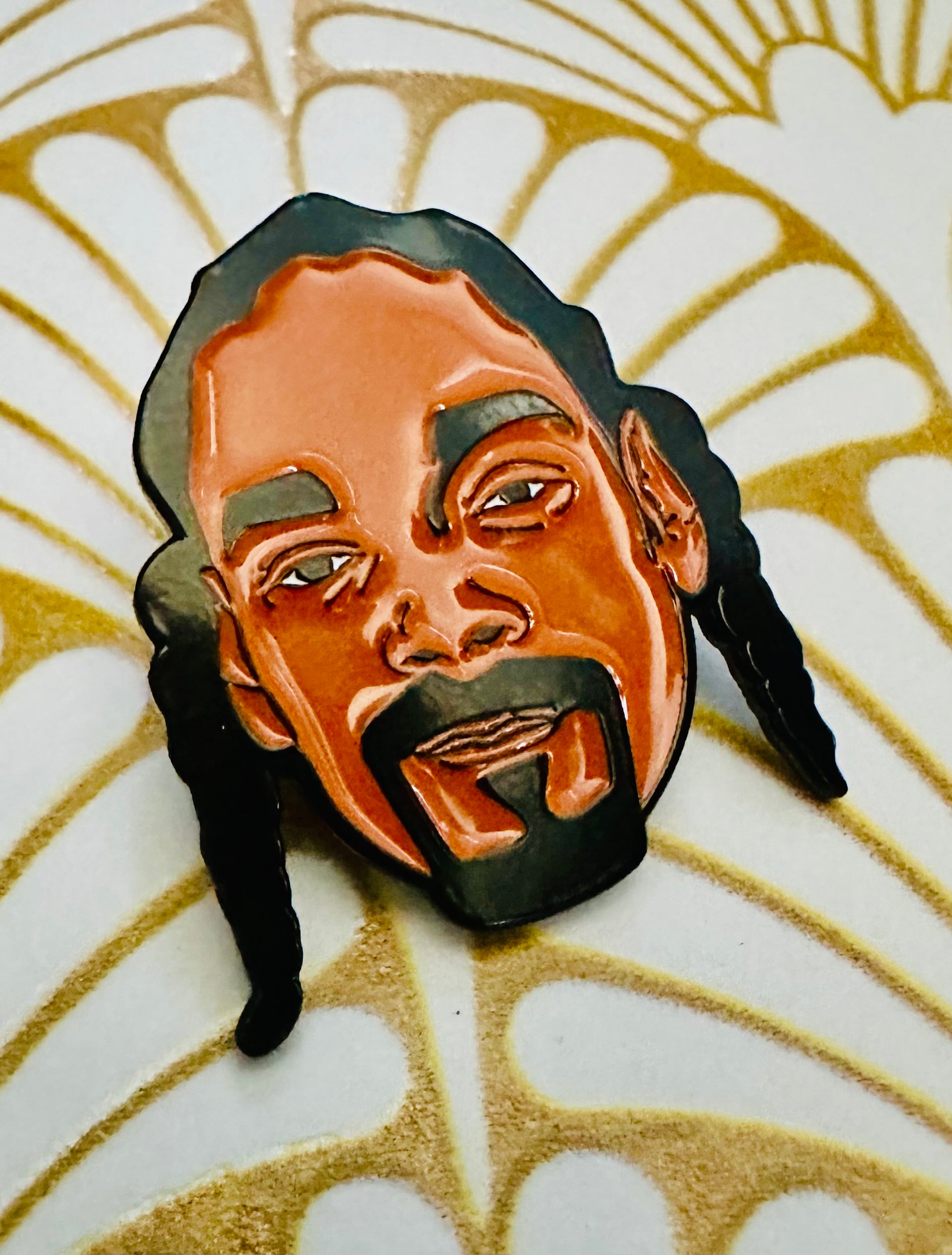 Get your hip-hop fix with the Snoop Dogg enamel pin! This pin features a cool design of the legendary rapper, perfect for showing off your love for music and style. Add it to your collection or pin it on your jacket for a touch of personality. (Offers a unique way to showcase music fandom and personal style.)