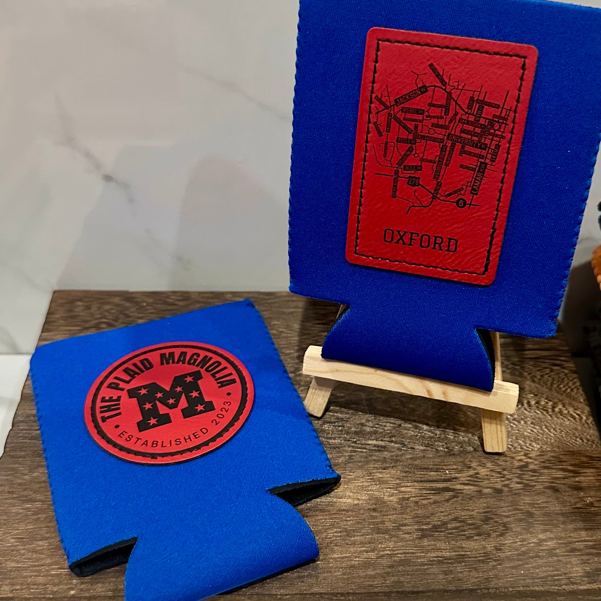 Take your drink game to the next level with The Oxford Koozie. Made with durable neoprene and featuring a laser-engraved patch, this koozie keeps your drink cool while showing off your Ole Miss pride. Plus, it's reversible with a fun college map and The Plaid Magnolia M-Star logo. Go Rebels!