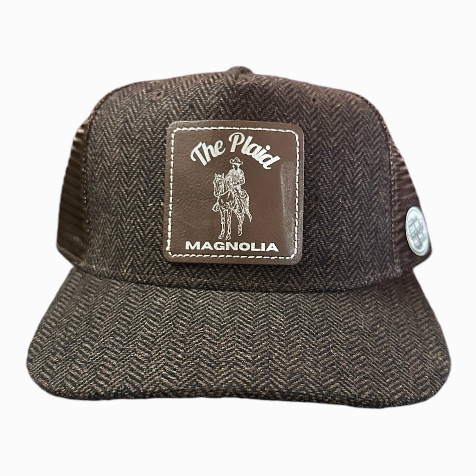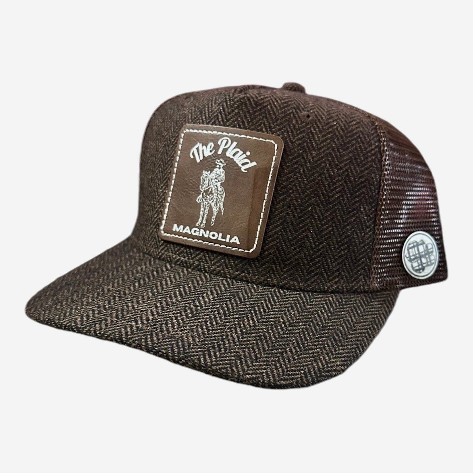 Introducing the TPM Cowboy Up Hat - a playful twist on the classic trucker hat! Featuring The Plaid Magnolia's custom engraved cowboy logo patch on a Legacy tweed design, this hat is perfect for anyone who loves to "cowboy up" and embrace their unique style. Yeehaw!