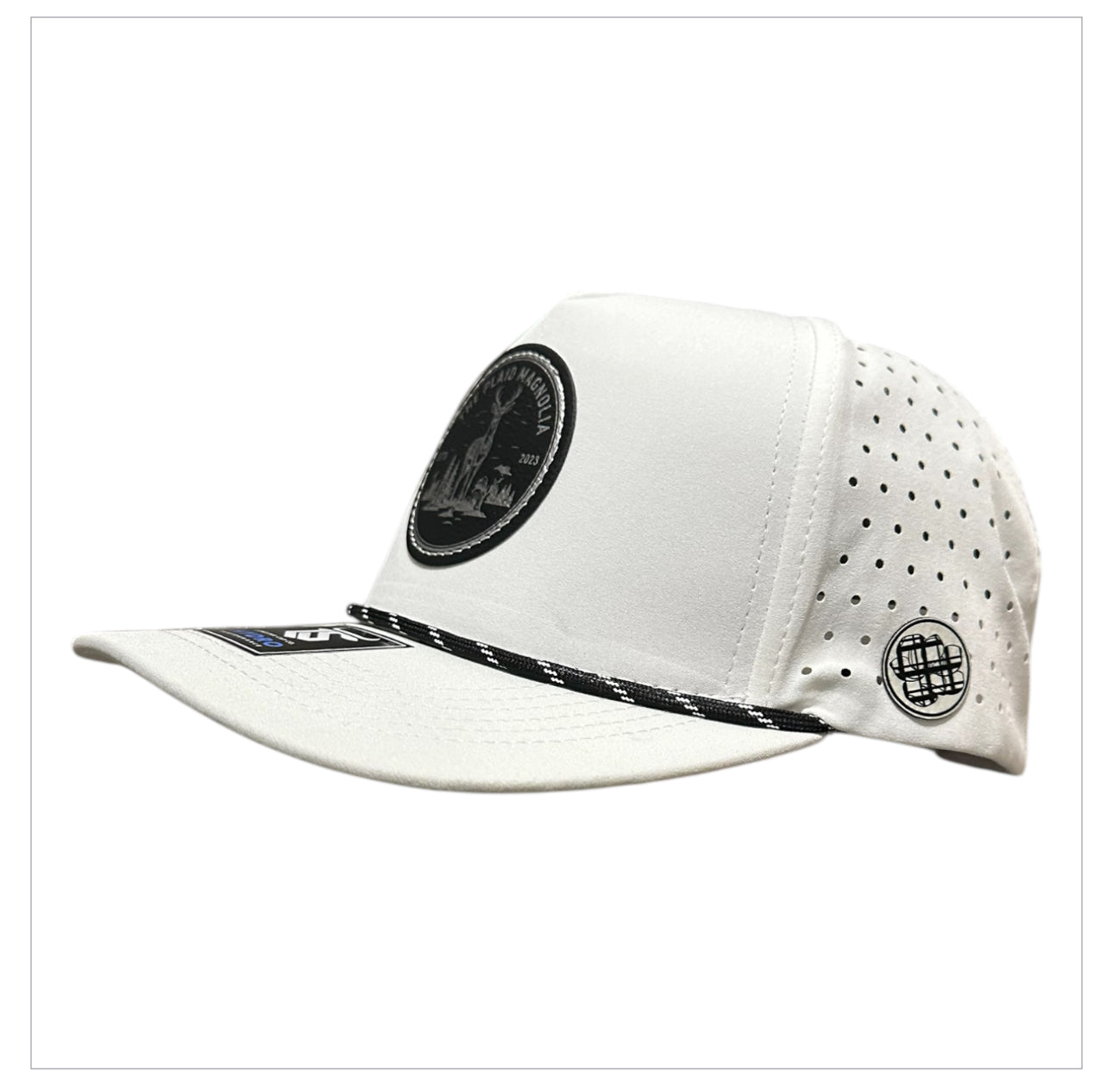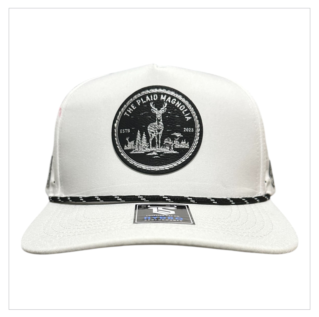 Stay dry and focused with the TPM Hunting Season Hat. Designed with a black and silver laser-engraved The Plaid Magnolia deer hunting logo, this Lonestar 5-panel Hydro rope cap is water and sweat resistant. Don't let the weather or your sweat distract you from your hunt!