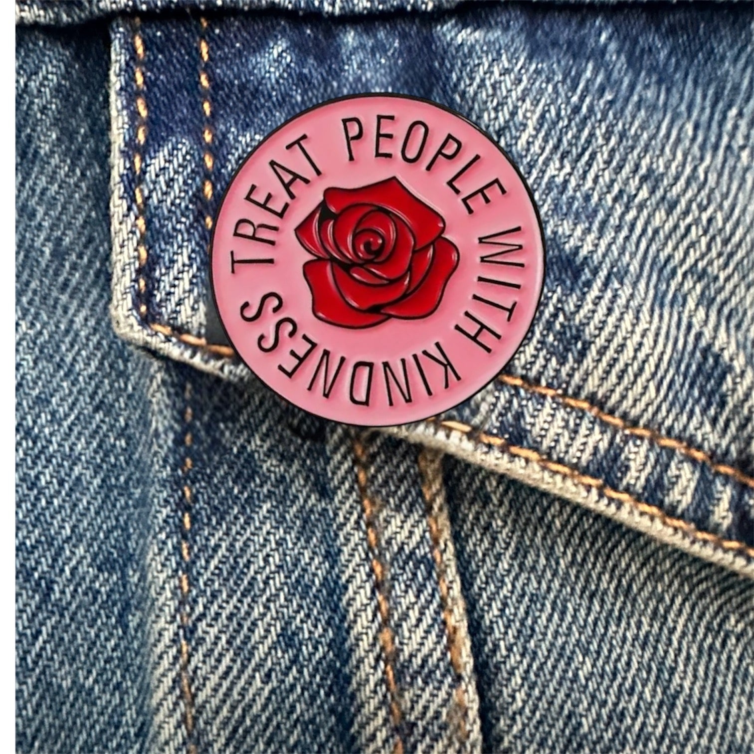 Spread love and positivity with our Treat People With Kindness enamel pin. This pin is a subtle and stylish way to remind yourself and others to always treat people with kindness. Wear it on your jacket, bag, or pin board to show your support for kindness and inclusivity.