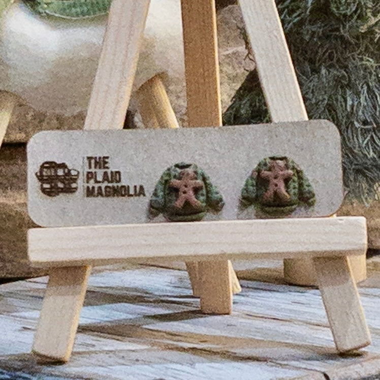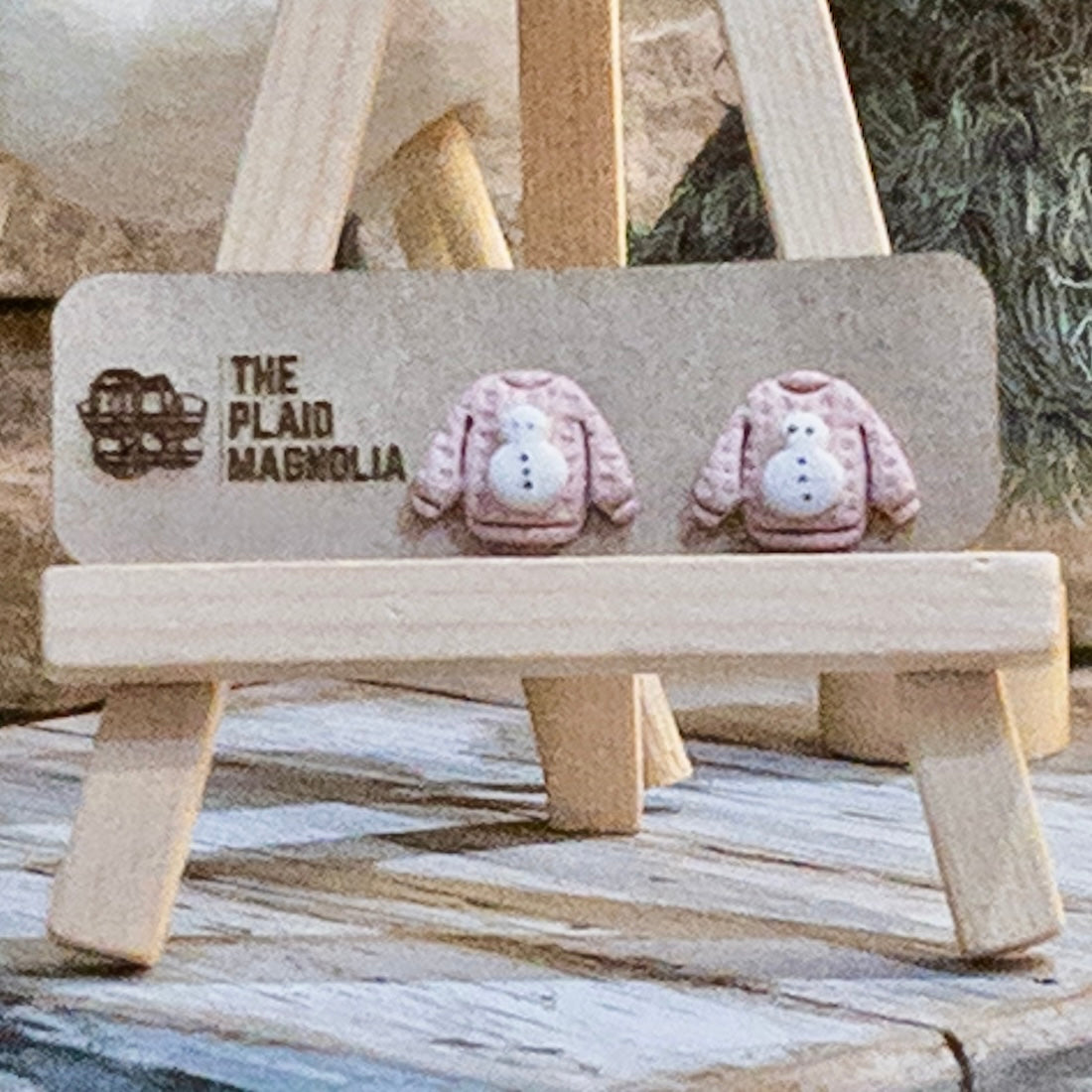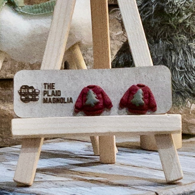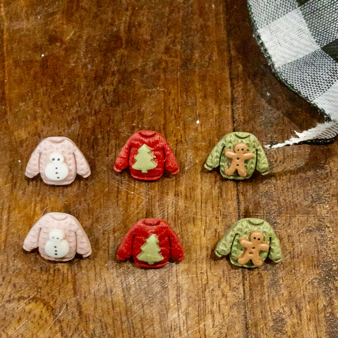 Expertly crafted with polymer clay, these Ugly Christmas Sweater Studs add a touch of festive and quirky style to any outfit. Choose from multiple variations and spread holiday cheer with these unique and fun earrings.