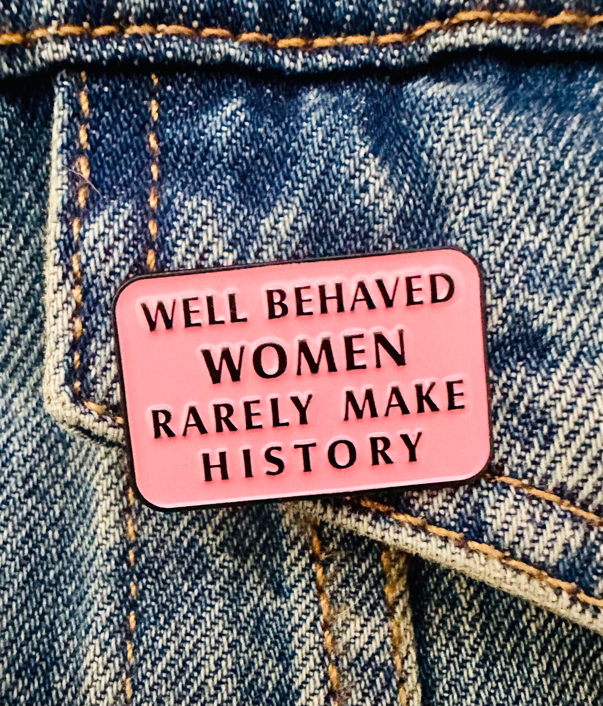 Celebrate the power and strength of women with our Well Behaved Women enamel pin. This beautifully crafted pin features the phrase "Well behaved women rarely make history," serving as a reminder to break societal norms and pave the way for change. A perfect accessory for any outfit, and a great conversation starter.