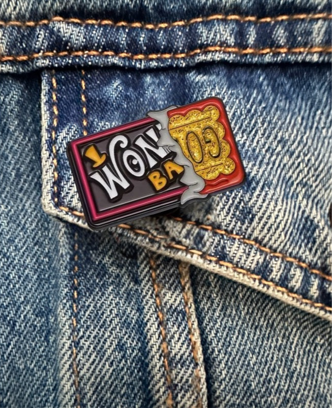 Indulge in a sweet treat for your wardrobe with our Wonka Bar enamel pin! This playful accessory adds a touch of whimsy to your outfits and is sure to get you noticed. Perfect for any fan of the deliciously quirky candy maker. (Get yours before they disappear!)